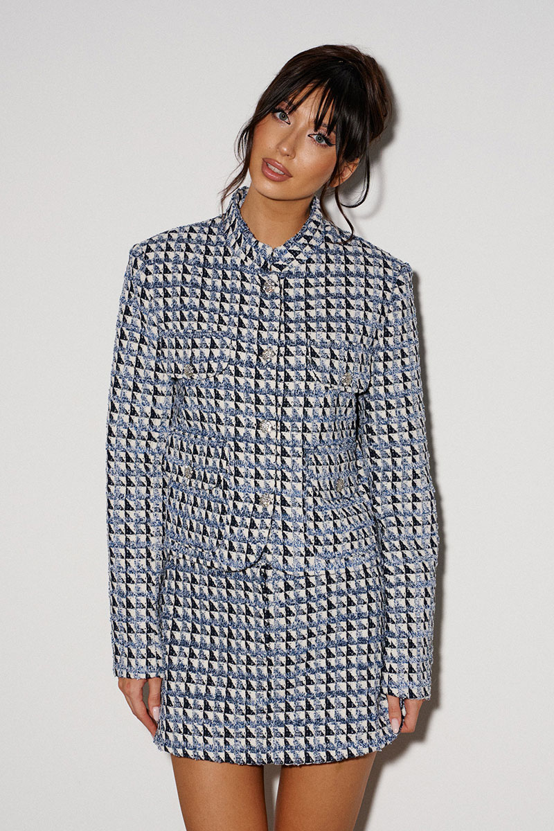 Жакет укороченный прямого свободного кроя выполнен из фактурного твидового полотна. Характеристики: брендированная подкладкой, горловина круглая, застёжка центральная - пуговицы, рукав втачной.