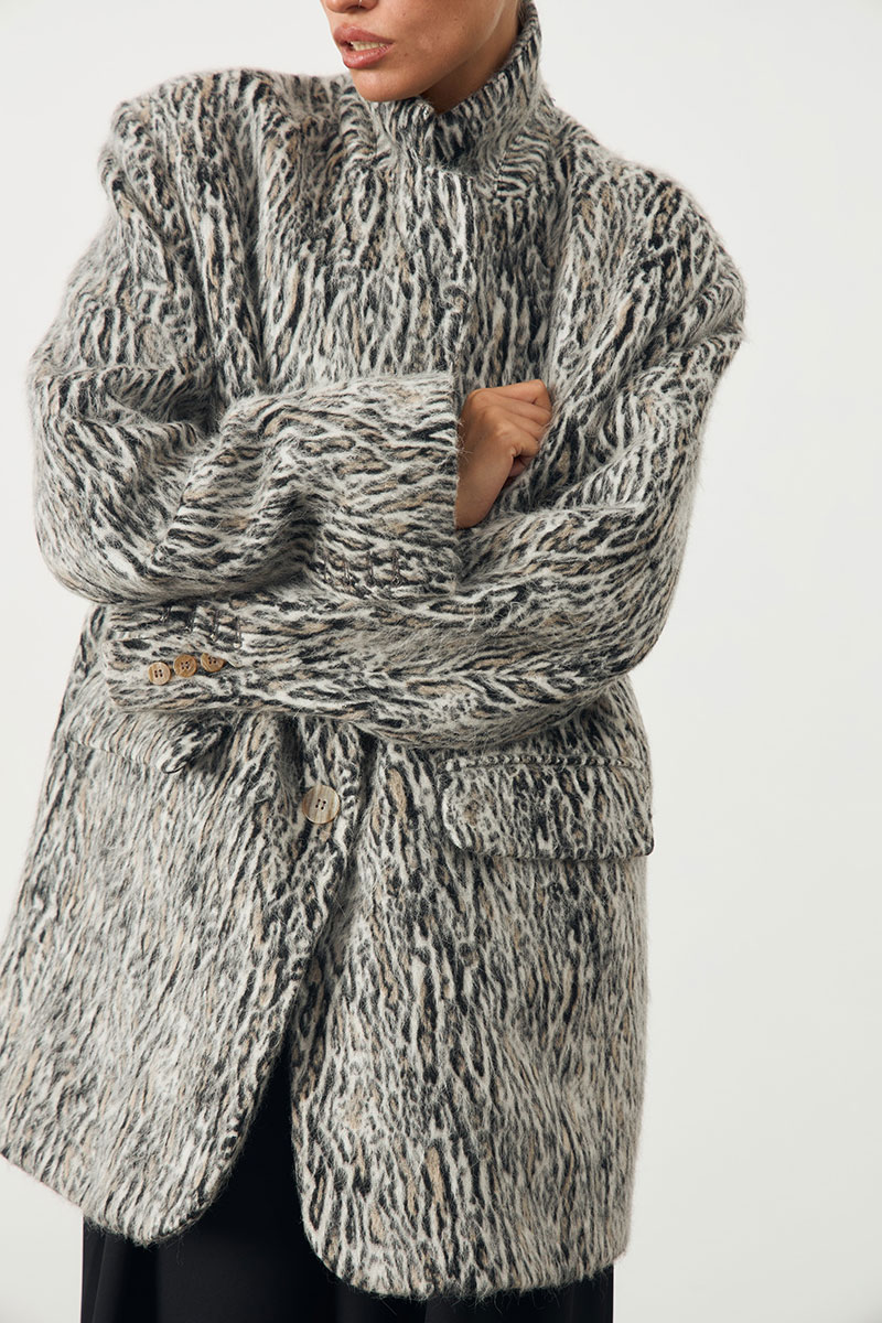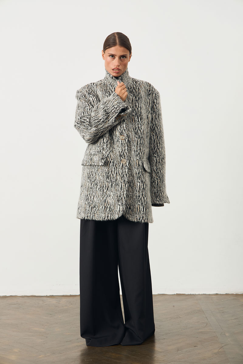 Жакет женский с добавлением шерсти. Жакет прямого кроя, воротник классический с лацканами, на подкладке. По переду изделия карманы с клапаном. Жакет с застежкой на пуговицах. По спинке изделия шлица.