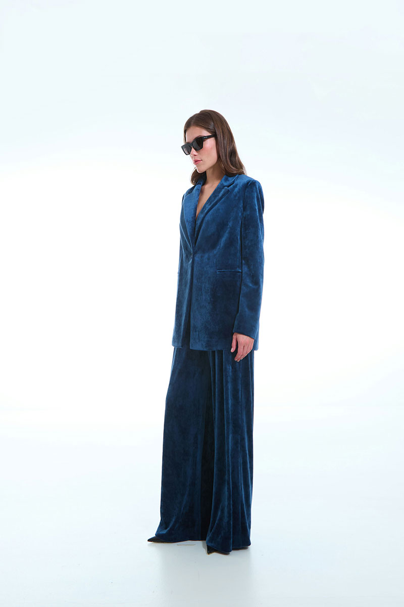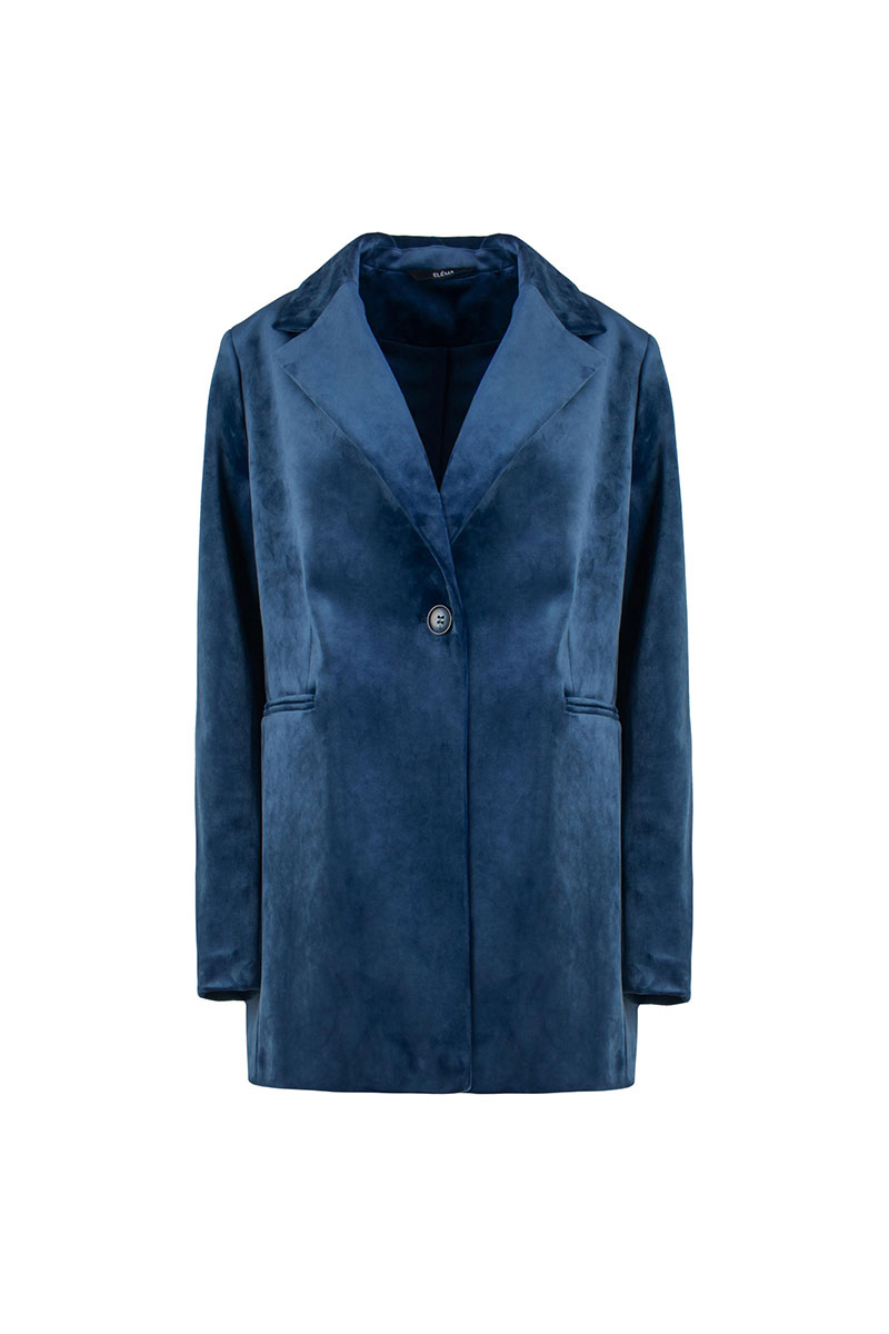 Жакет женский, однобортный, прямого силуэта, на подкладке. Застежка на петлю и пуговицу. На переде карманы «в рамку». Рукава втачные. Воротник и лацкана отложные.