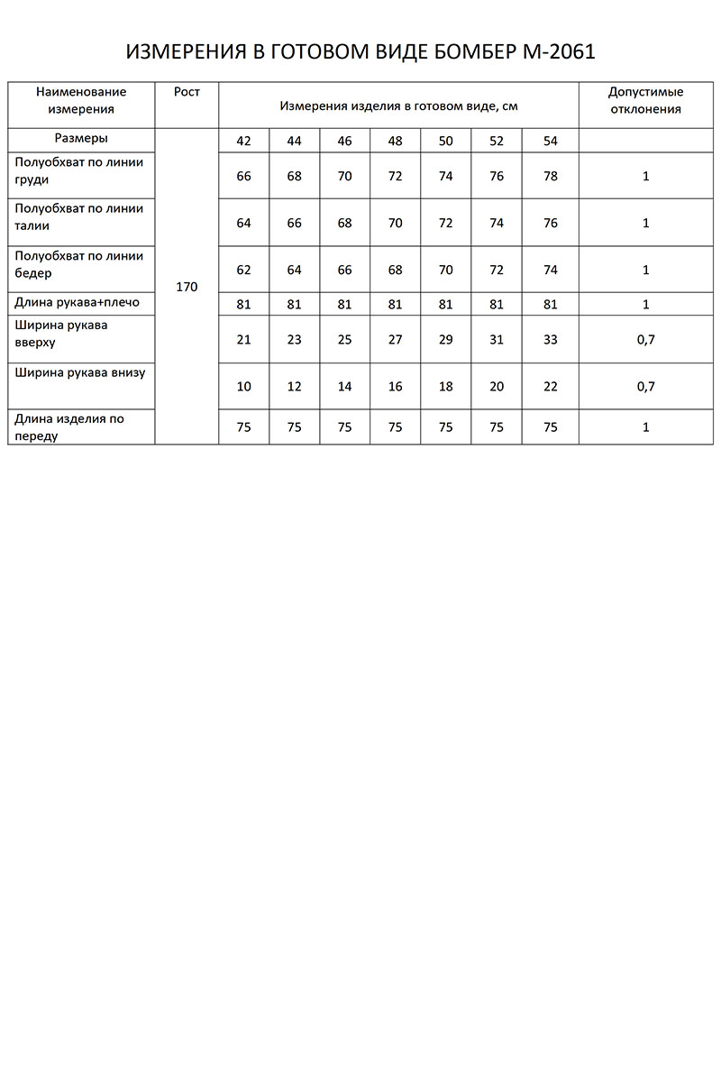 Длина бомбера 75 см.