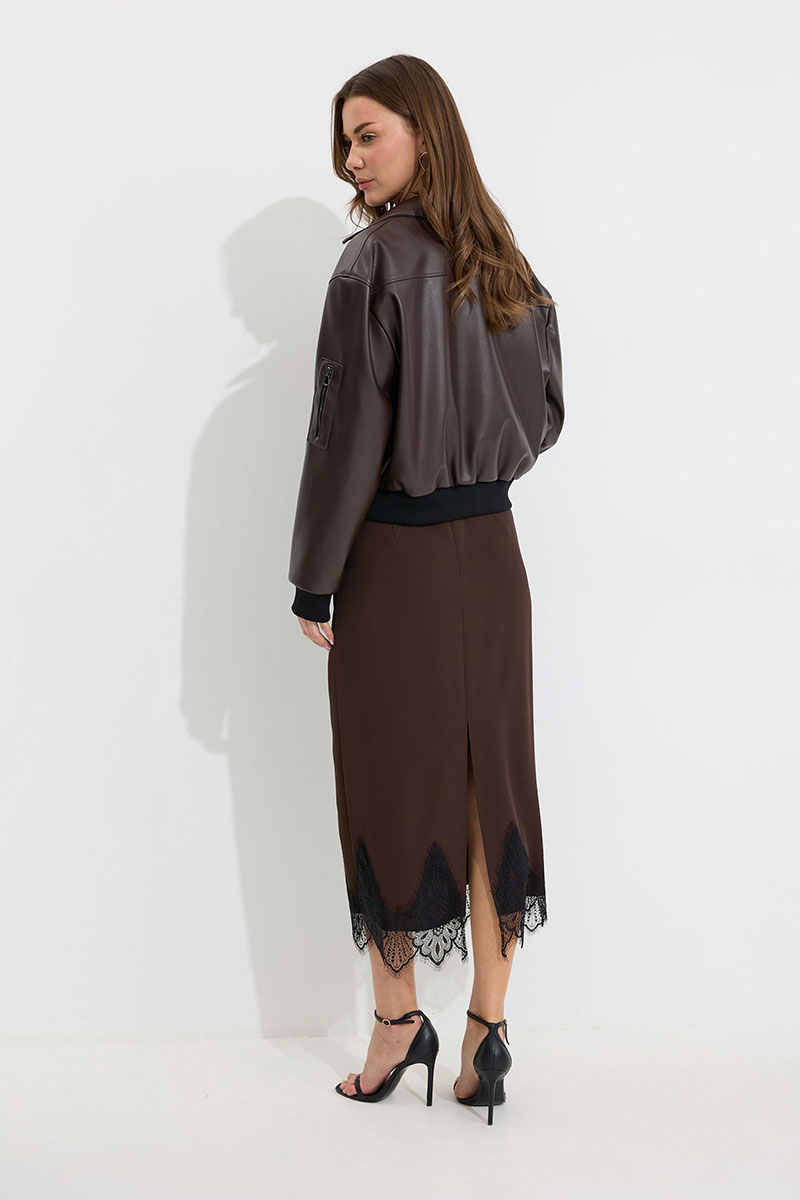 Жакет прямого силуэта из экокожи. Воротник отложной, по центру застежка на молнию. Жакет с удлиненной линией плеча, рукав одношовный втачной, по низу рукава манжета (из трикотажного полотна). По переду рельефы с функциональными карманами и декоративный элемент с молнией. На спинке кокетка. По низу жакета притачной пояс (из трикотажного полотна). Жакет на подкладке. Обращаем ваше внимание, что фурнитура может отличаться от фото.