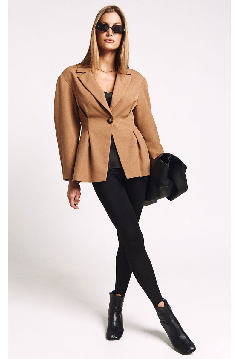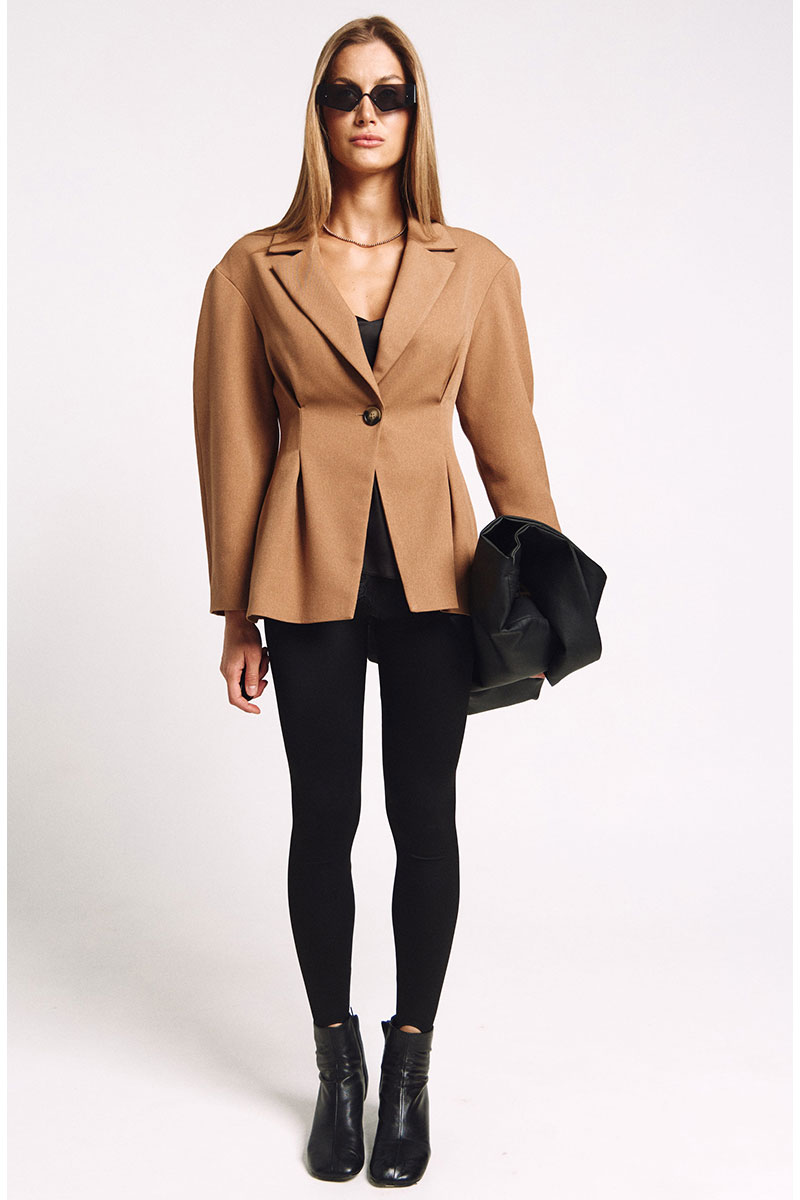 Приталенный жакет актуального силуэта, с расширенной линией плеча.