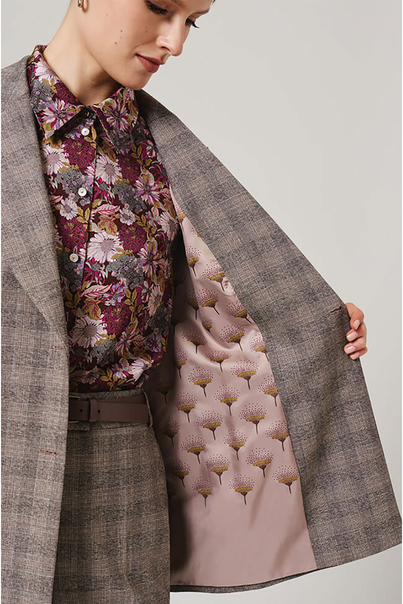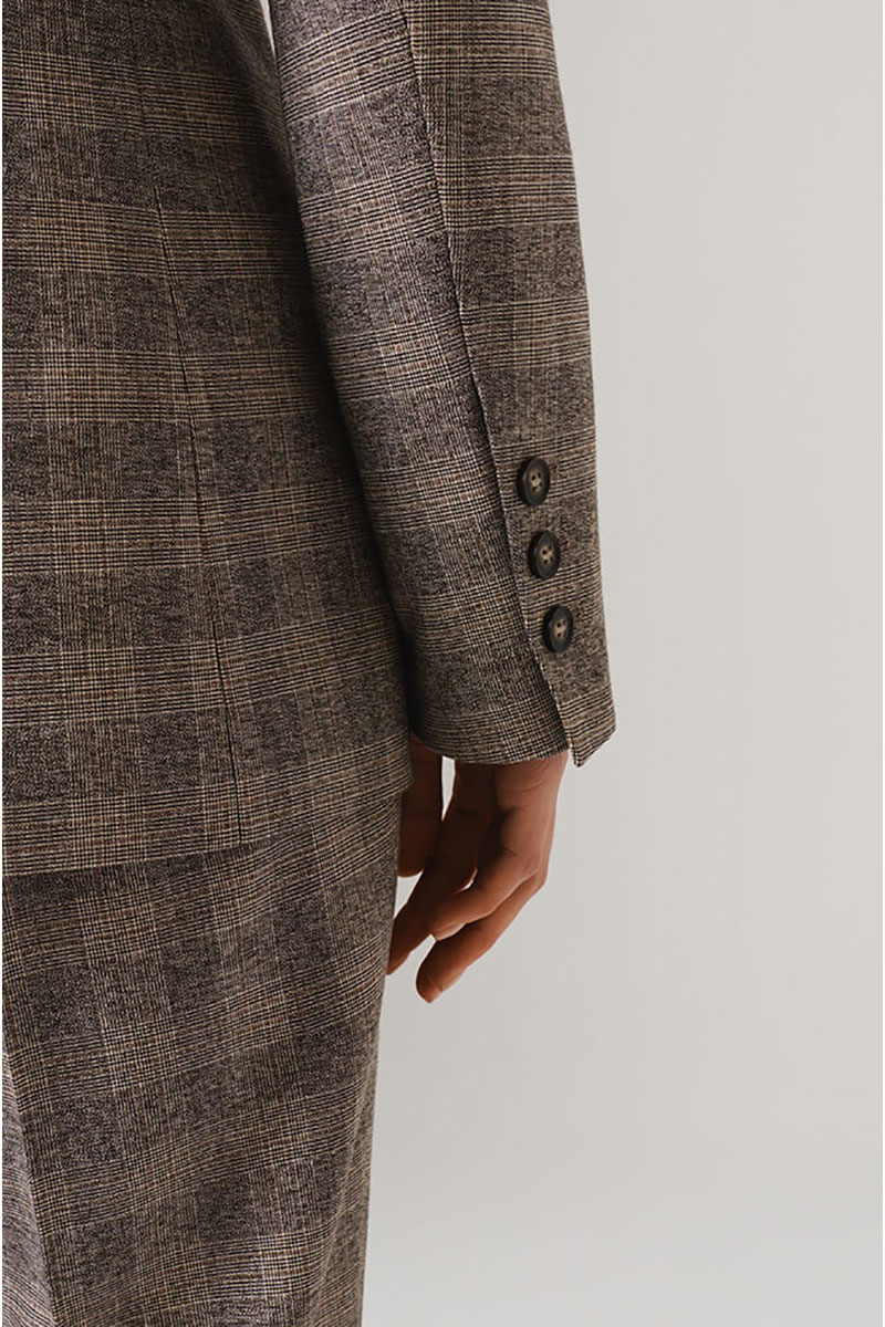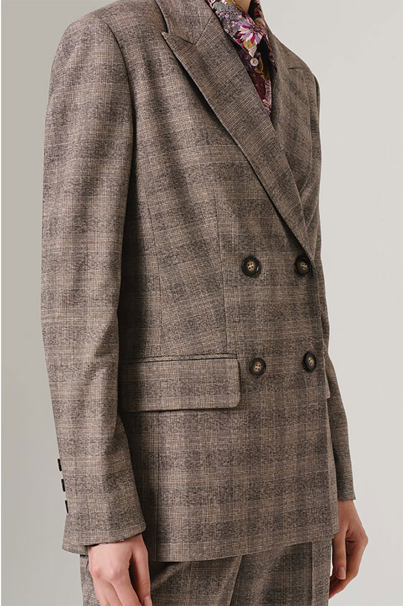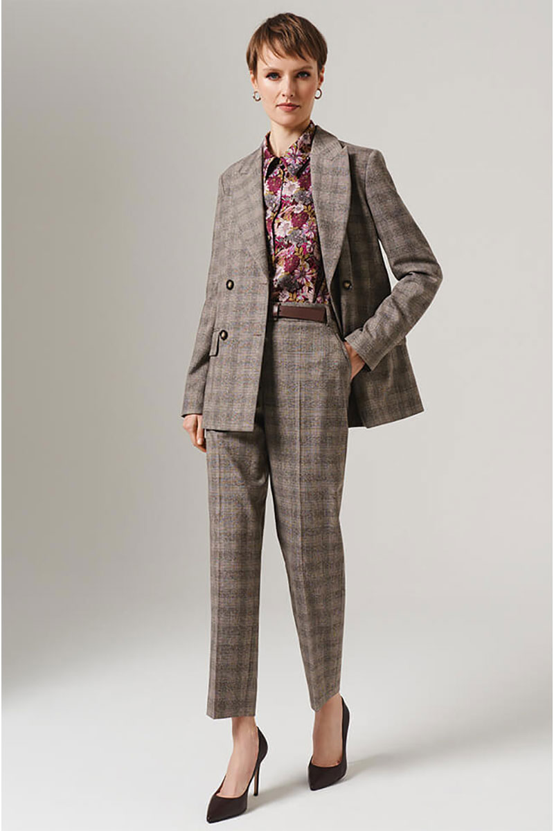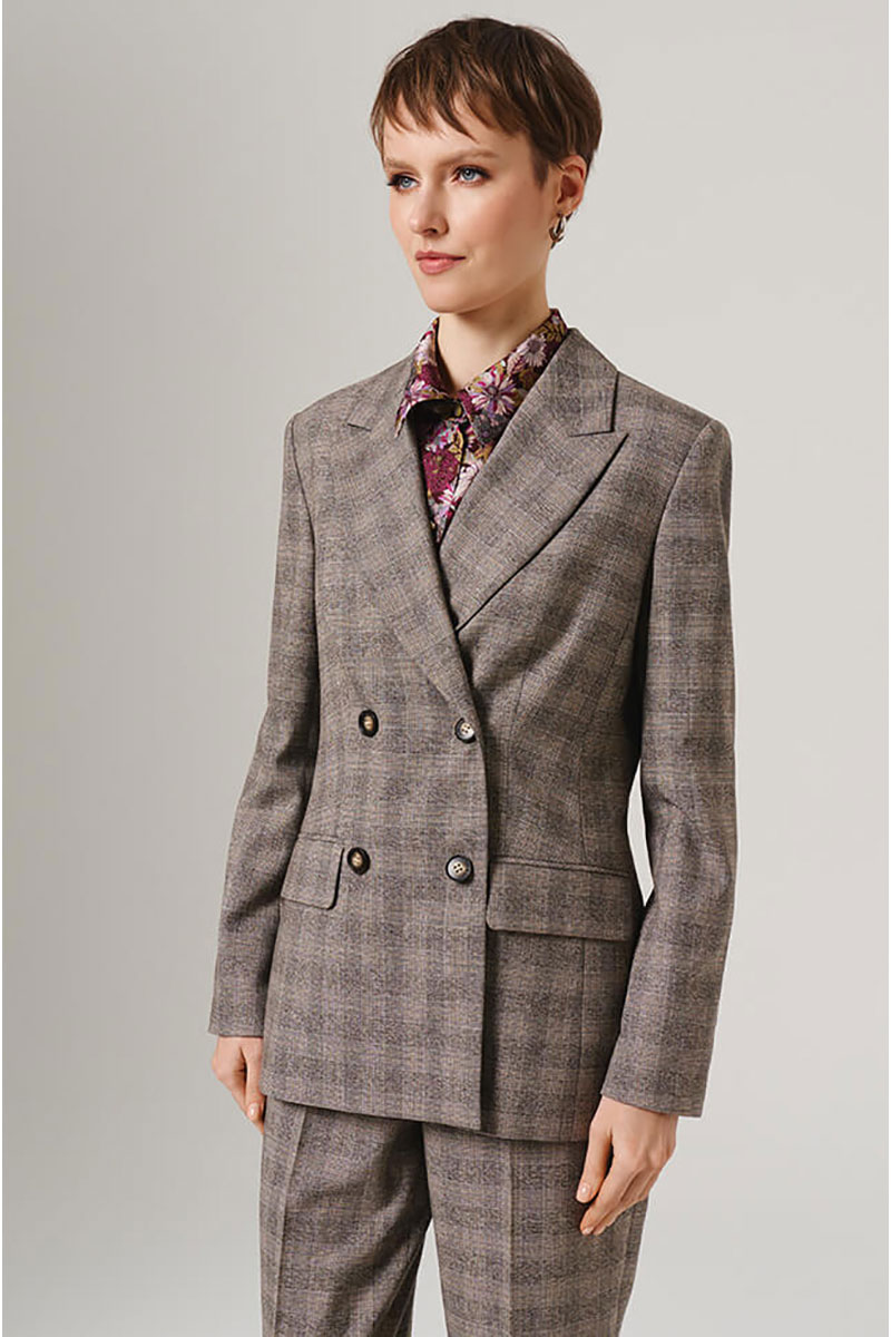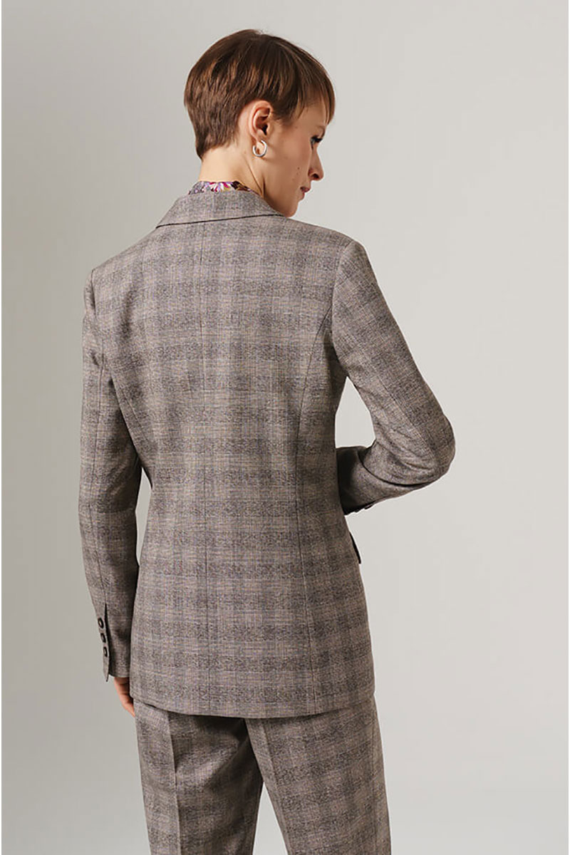 Этот жакет выполнен из высококачественного костюмного полотна в клетку. Двубортный фасон выглядит солидно и официально, прекрасно подходит как для повседневной носки, так и для деловых встреч. Широкая застежка на крупные пуговицы выгодно дополнит общую композицию, подчеркивая благородство дизайна. Заканчивающиеся на рукавах изящные шлицы с декоративной застежкой привнесут элемент эксклюзивности и шарма. Отложной воротник с лацканами обеспечивает элегантность и универсальность в сочетании с любыми нарядами. Просторный прямой покрой позволит свободно двигаться и чувствовать себя уверенно в любой ситуации. Имитация карманов с клапанами усиливает формальные ноты, принося ощущение продуманности и законченности. Позвольте себе насладиться удобством и качеством этого великолепного жакета! С любовью и заботой о Вас, команда бренда NELVA!