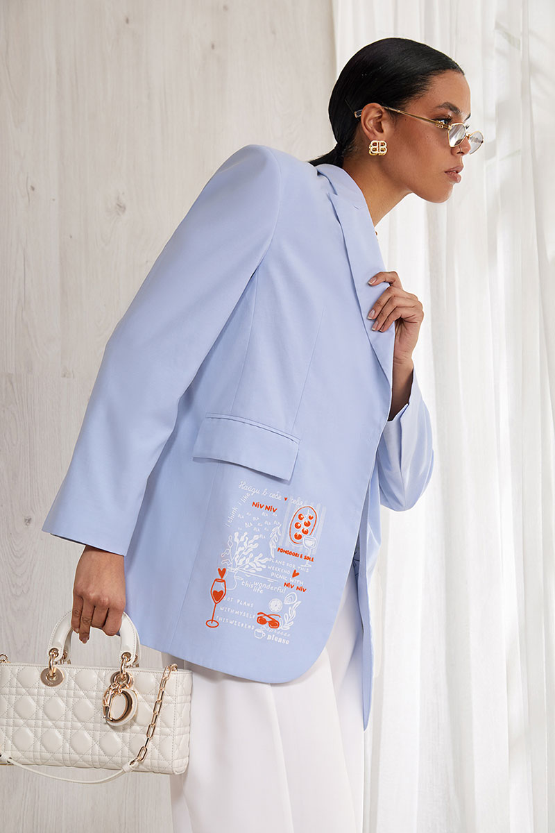 Яркие авторские принты на жакете придают изделию индивидуальность и неповторимость.