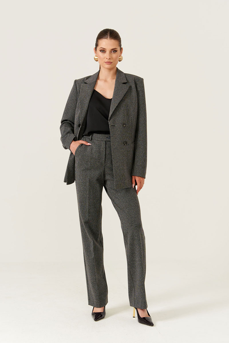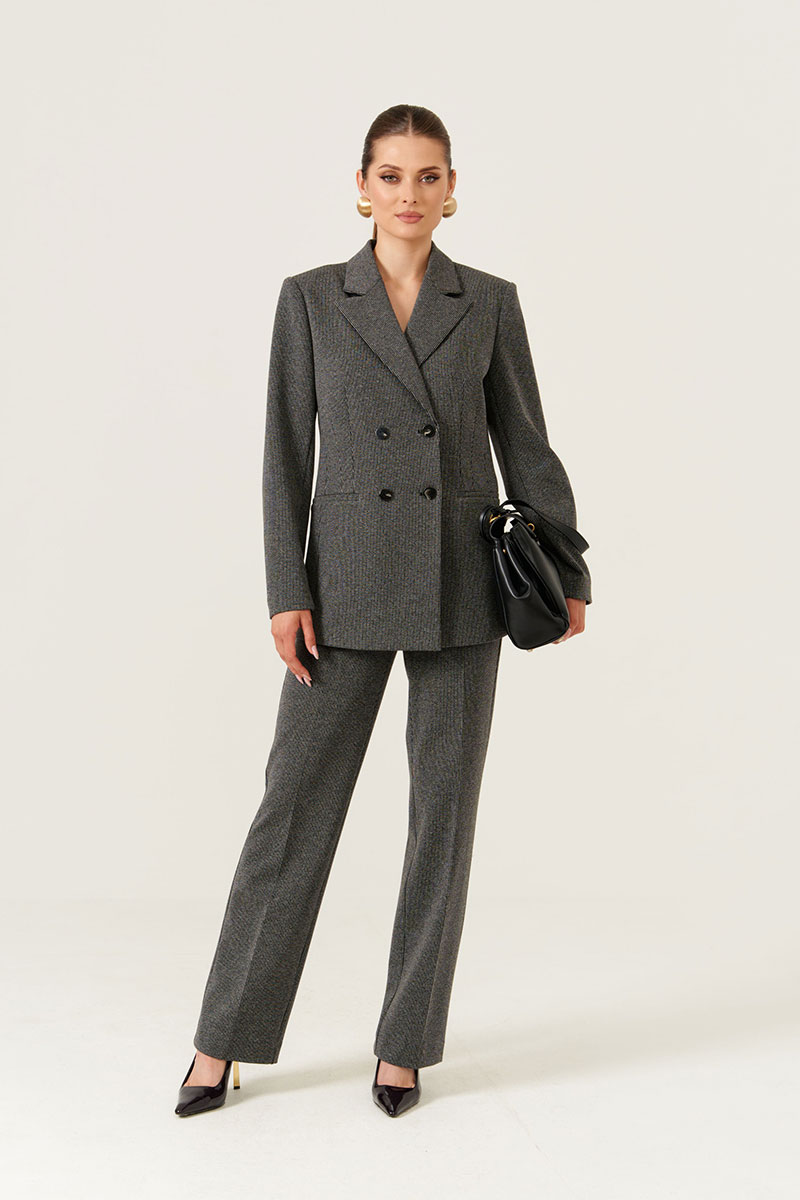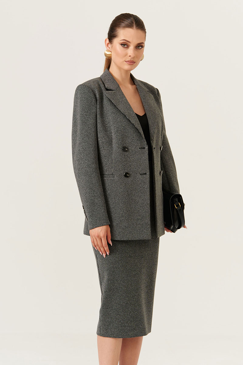 Жакет женский из смесового трикотажного полотна для повседневной носки. Жакет полуприлегающего силуэта. Застежка центральная бортовая на одну обметанную петлю и одну пуговицу. Перед имеет две талиевые вытачки и рельефы, идущие от проймы до линии низа изделия, а также на переде располагается два прорезных кармана с листочкой. Спинка со средним швом и четырьмя рельефами. Рельефы, идущие от плечевого шва и от проймы до низа изделия. Горловина V-образная, обработана воротником стойкой. Рукава втачные длинные. По низу рукава имеется декоративная шлица на обметанные петли и пуговицы. Жакет имеет поливискозную подкладку по переду. Очень стильный жакет, который обязательно не оставит никого равнодушным. В нем вы сможете чувствовать себя модной, а главное очень красивой.