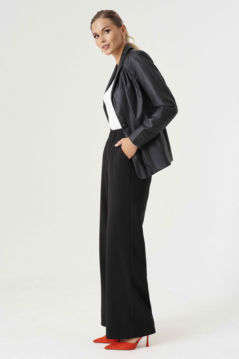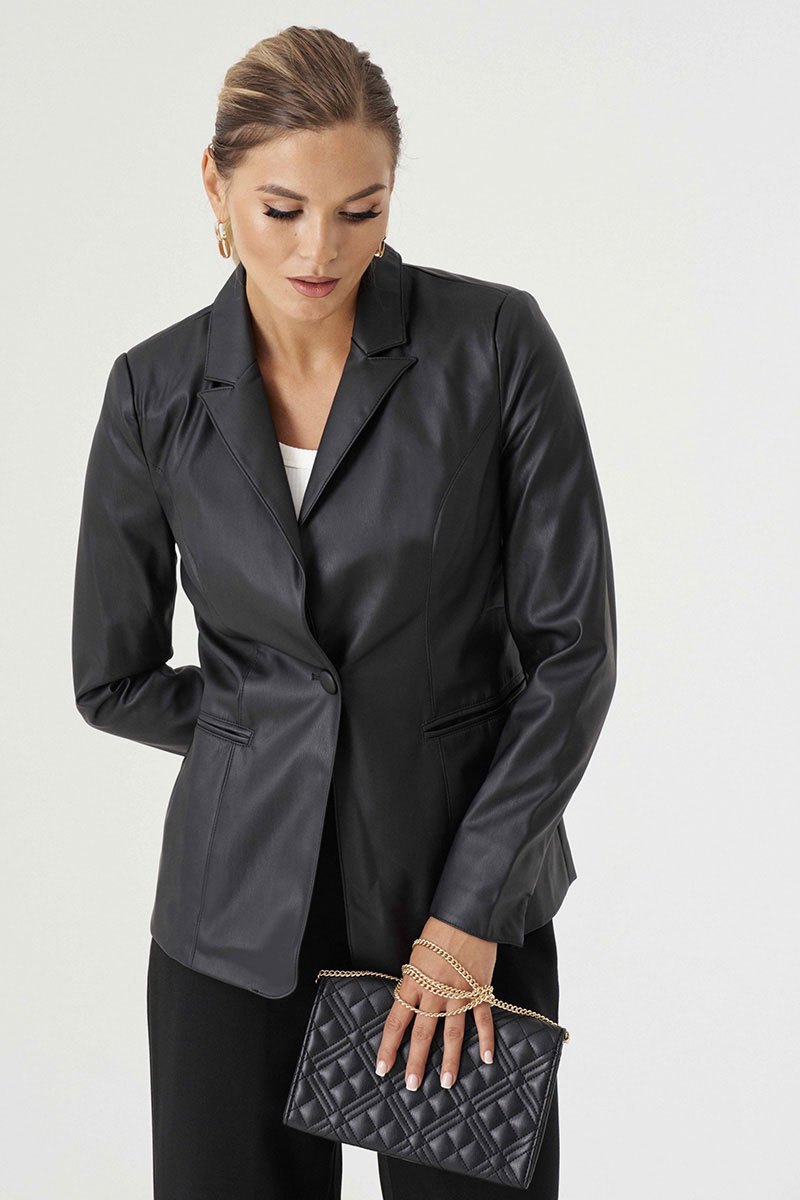 Жакет женский из кожи для повседневной носки. Изделие на поливискозной подкладке. Жакет однобортный полуприлегающего силуэта с длинным рукавом. По переду жакета рельефные швы и прорезные карманы. По спинке рельефные швы.