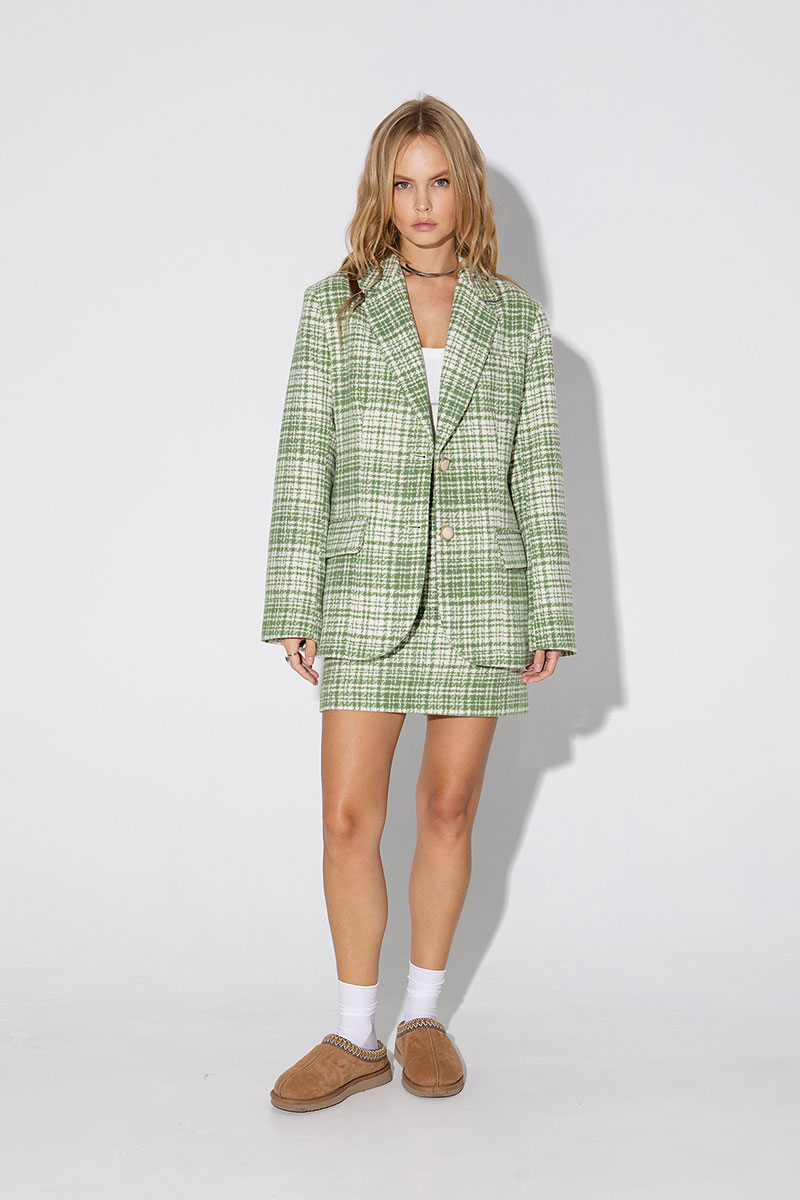Оверсайз жакет из фактурной ткани. Детали: жакет прямого силуэта, расширенная линия плеч, пиджачный воротник, перед с прорезными функциональными карманами, однобортная застежка на петли и пуговицы, спинка со средним швом и шлицей, рукава втачные двухшовные, жакет на подкладке.