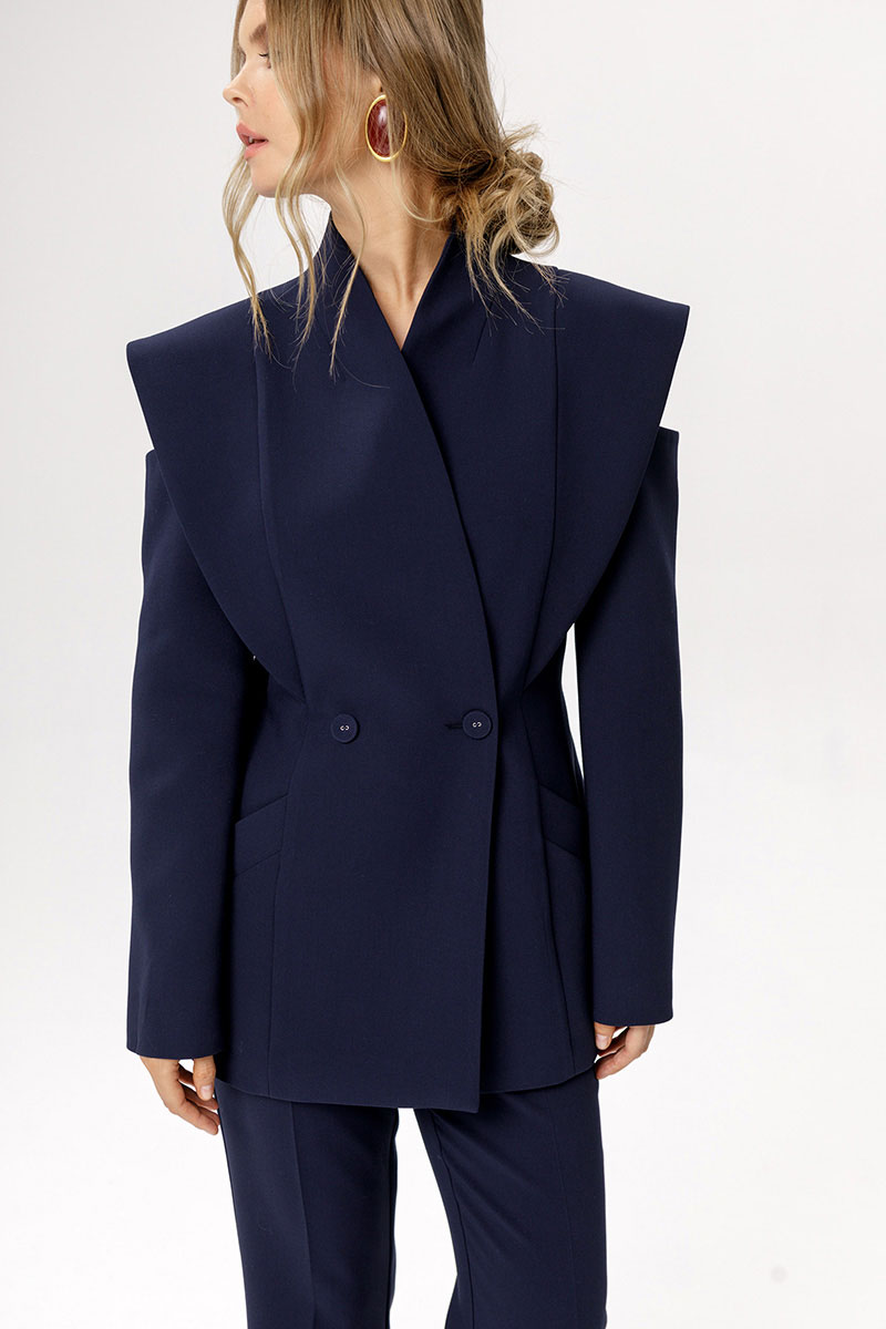 Приталенный двубортный жакет.