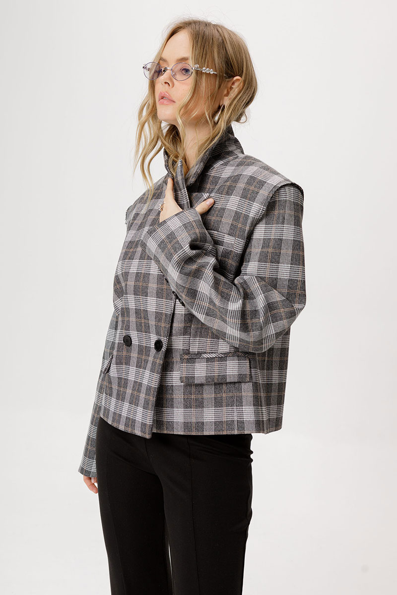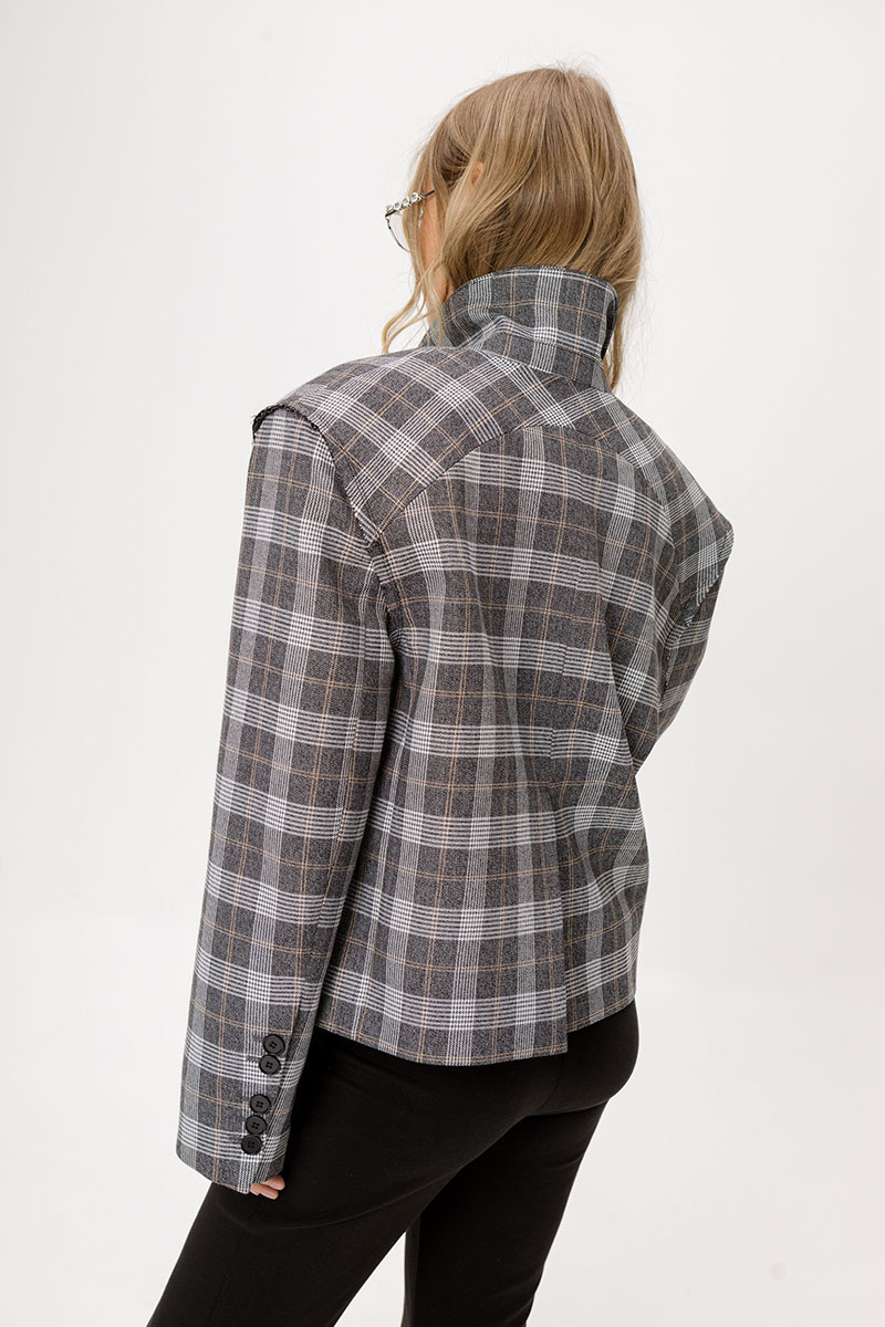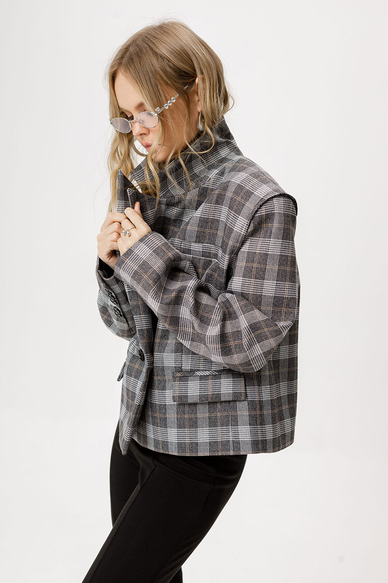 Укороченный оверсайз жакет в клетку с необработанными проймами.