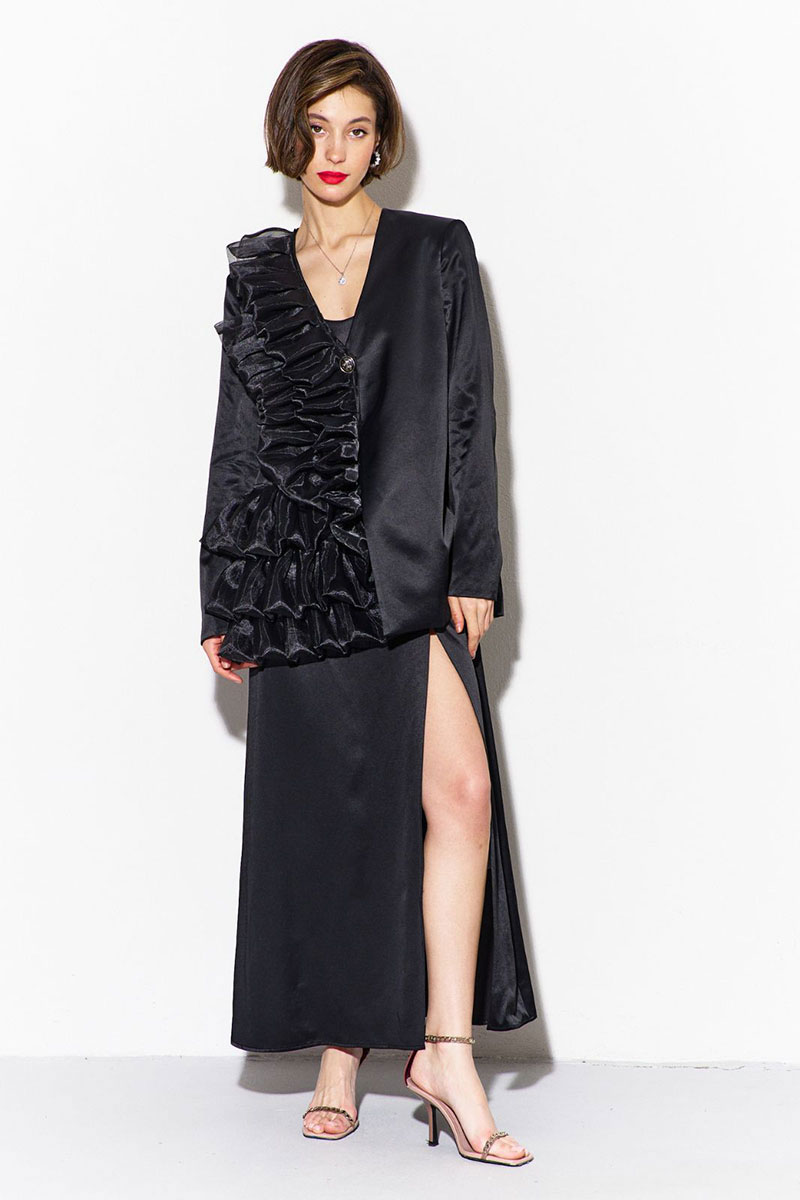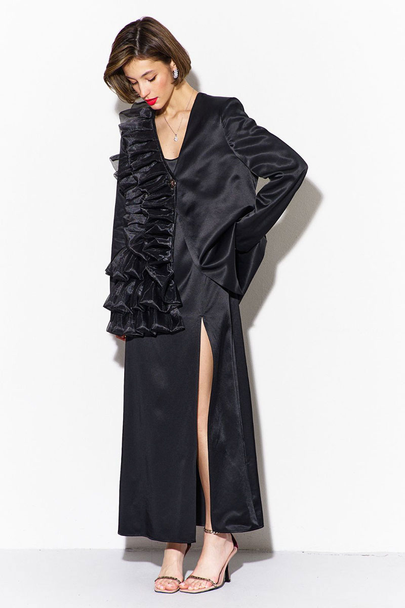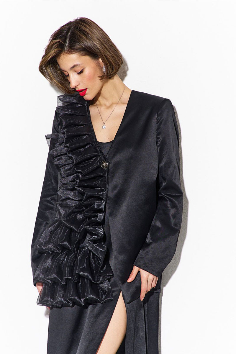 -правый перед декорирован рюшами из отделочной ткани