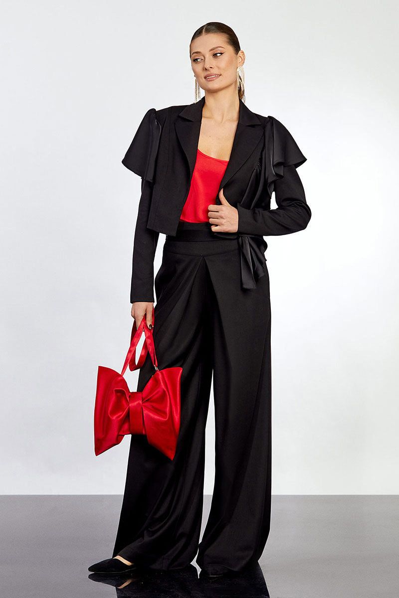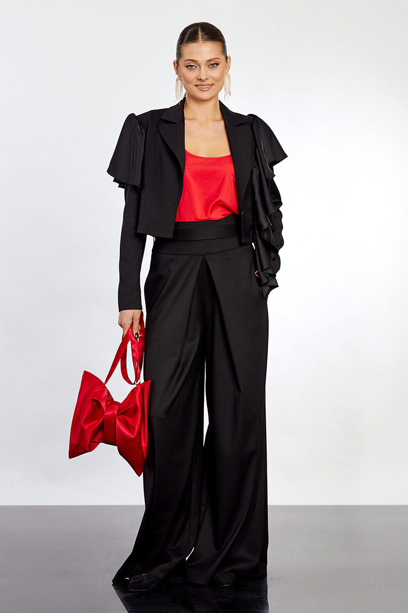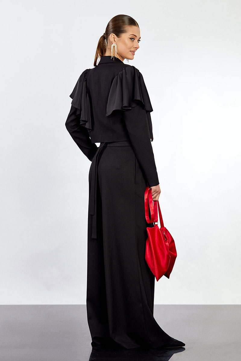 - воланы из шелка Армани со сборкой в рельефе левого и пройме правого рукавов