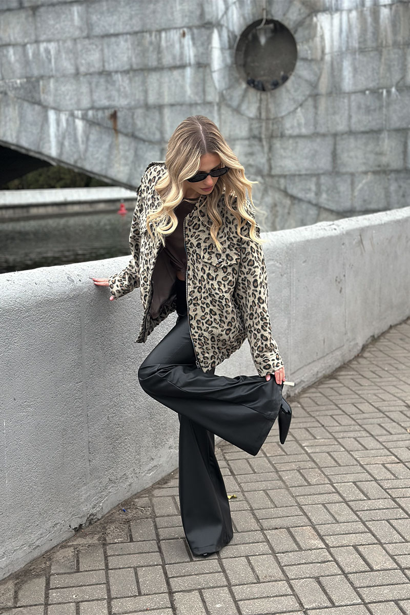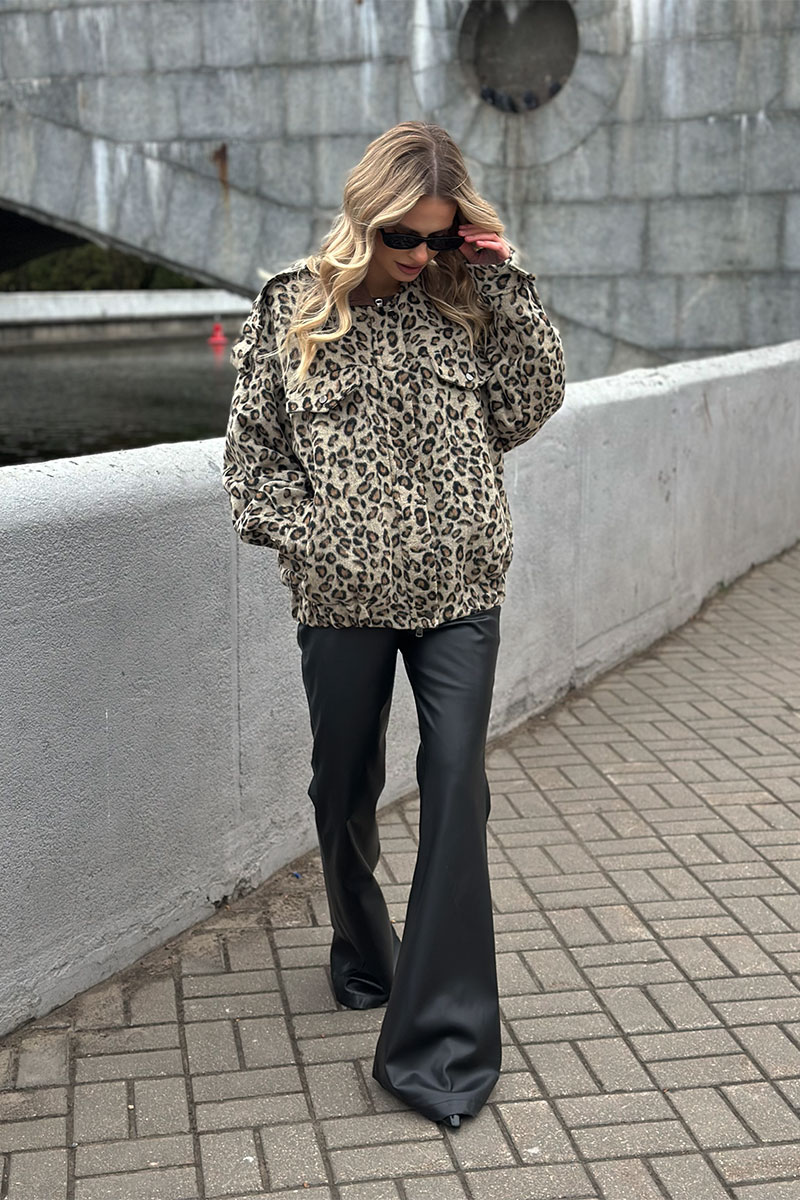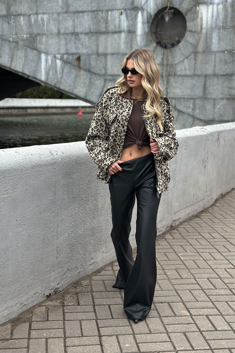 Блейзер-бомбер оверсайз кроя, спущенная линия плеча, на подкладке с карманами, на молнии и кнопках, по низу изделия резинка.