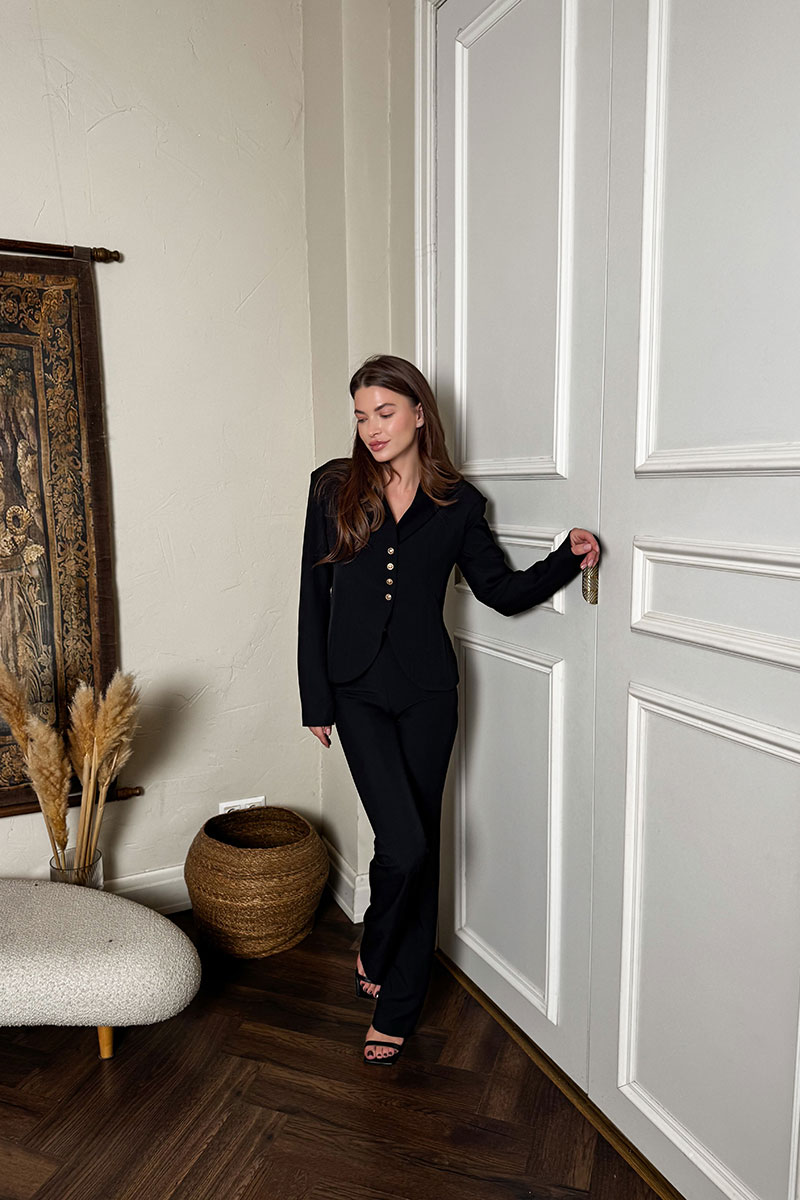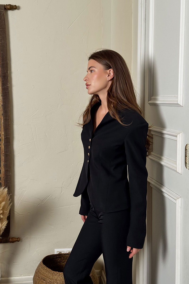 Жакет приталенного кроя с расширеной линией плеча. Рост модели 168 см.