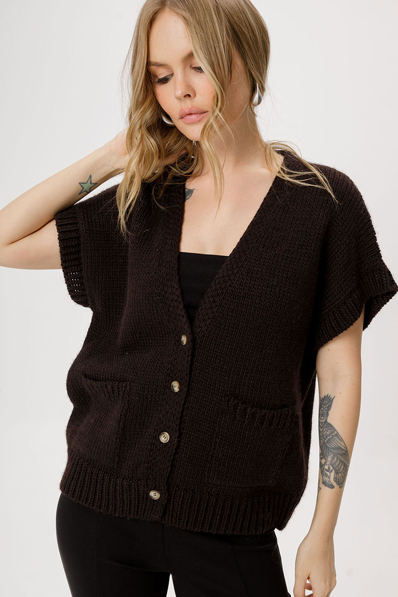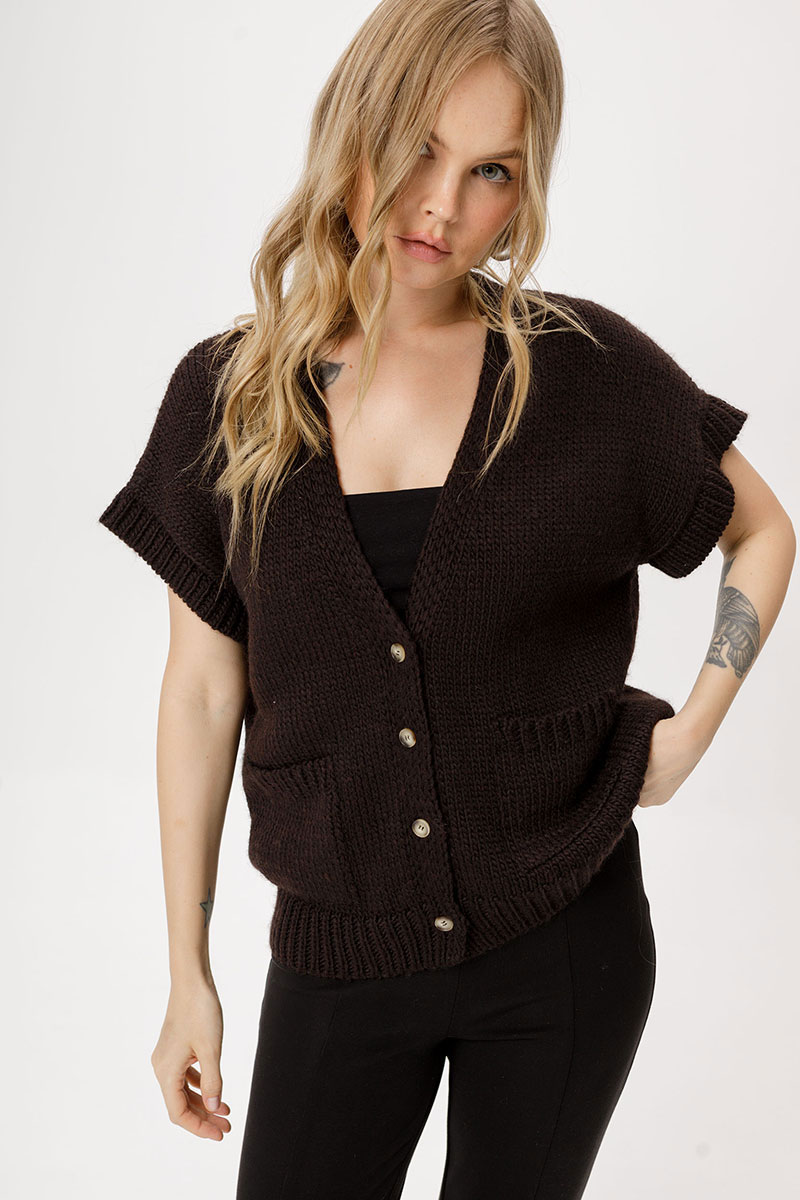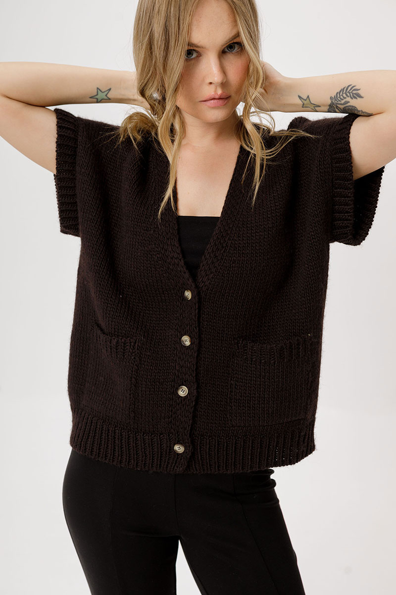 Свободный вязаный жилет с шерстью.