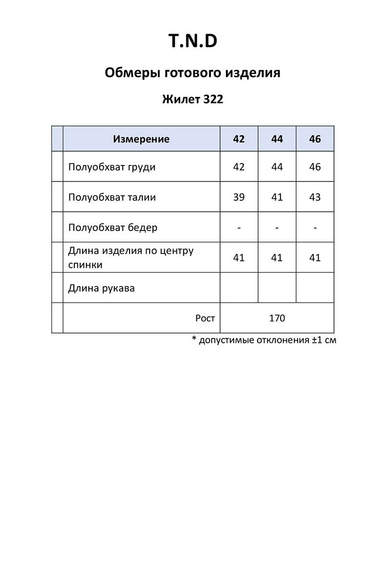 Застежка центральная на петли-пуговицы. Вырез горловины V-образный. Низ полочки фигурный. Спинка прямая, со средним швом и вытачками.
